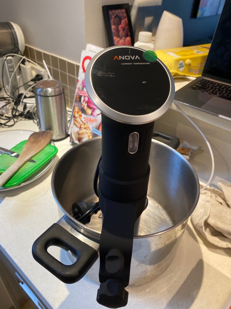 New cooking fad appliances bought: 1 – well 2—maybe 3 if you include the Soda Stream birthday gift. The only one I’ve bought is the Inova sous vide precision cooker, (and the vacuum sealer to go with it.) I can already tell it’s going to be life changing for 6 months and then sit in the drawer untouched most of the year. It’s pretty cool though- I’ve already made carrots and asparagus. Gary was unimpressed. They tasted great but they were pretty much just normal carrots and normal asparagus. So, he doesn’t really get what all the fuss is about.